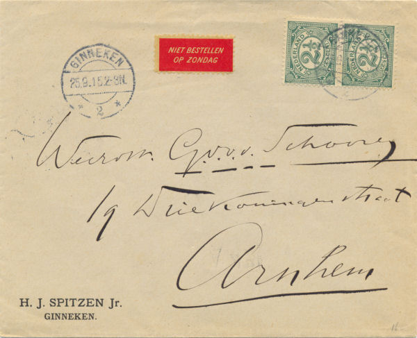 Staten Generaal, welke waren voorzien van het etiket "BESTELLEN OP ZONDAG".